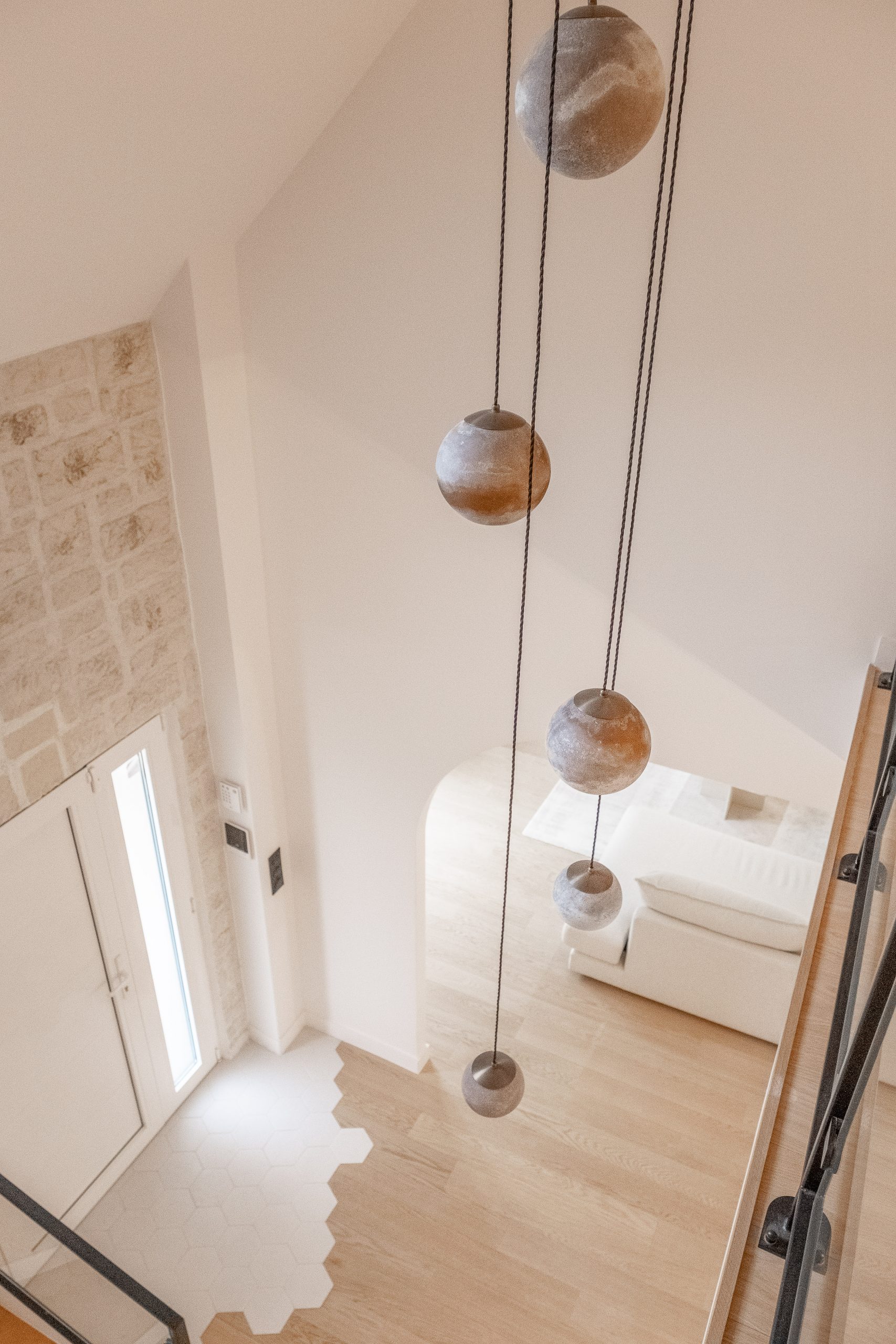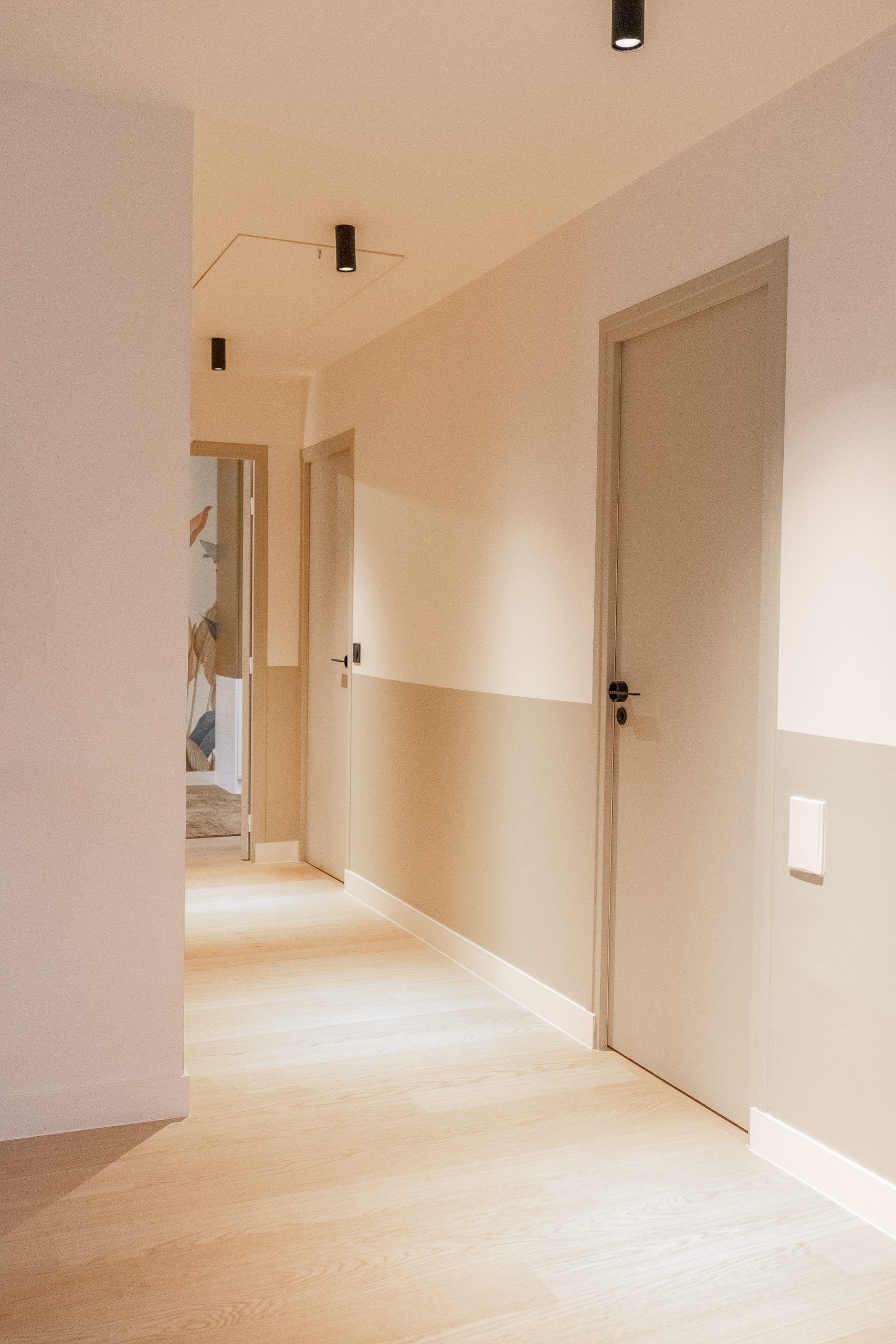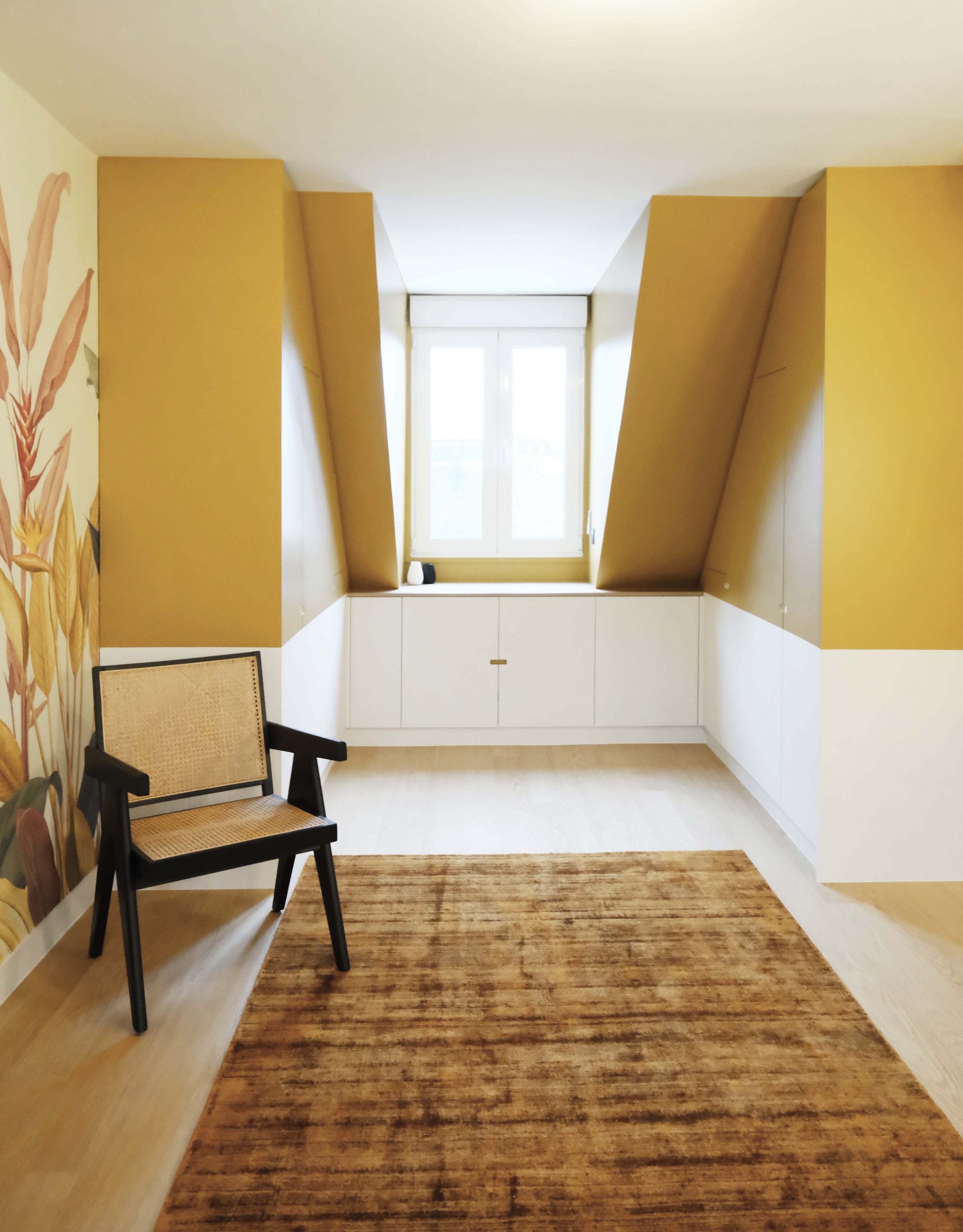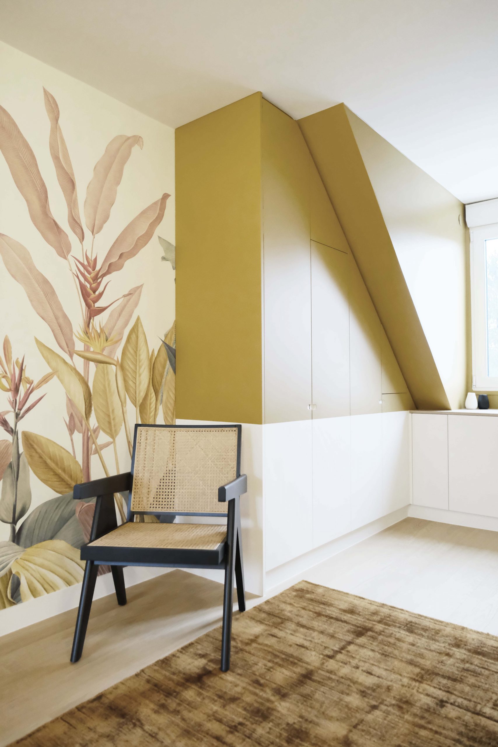 À l’étage, chaque chambre affirme une personnalité distincte grâce à un jeu de couleurs audacieux et à des têtes de lit dessinées sur mesure. L’escalier a été modernisé avec un garde-corps vitré, apportant légèreté et transparence. De nombreux aménagements sur mesure ont été intégrés pour renforcer le confort et le caractère du lieu. Le projet a également inclus des interventions techniques et extérieures : remplacement des fenêtres, ravalement de façade, sols extérieurs refaits, installation d’une climatisation — une rénovation globale pensée pour inscrire cette maison dans une nouvelle époque, sans perdre son âme familiale.