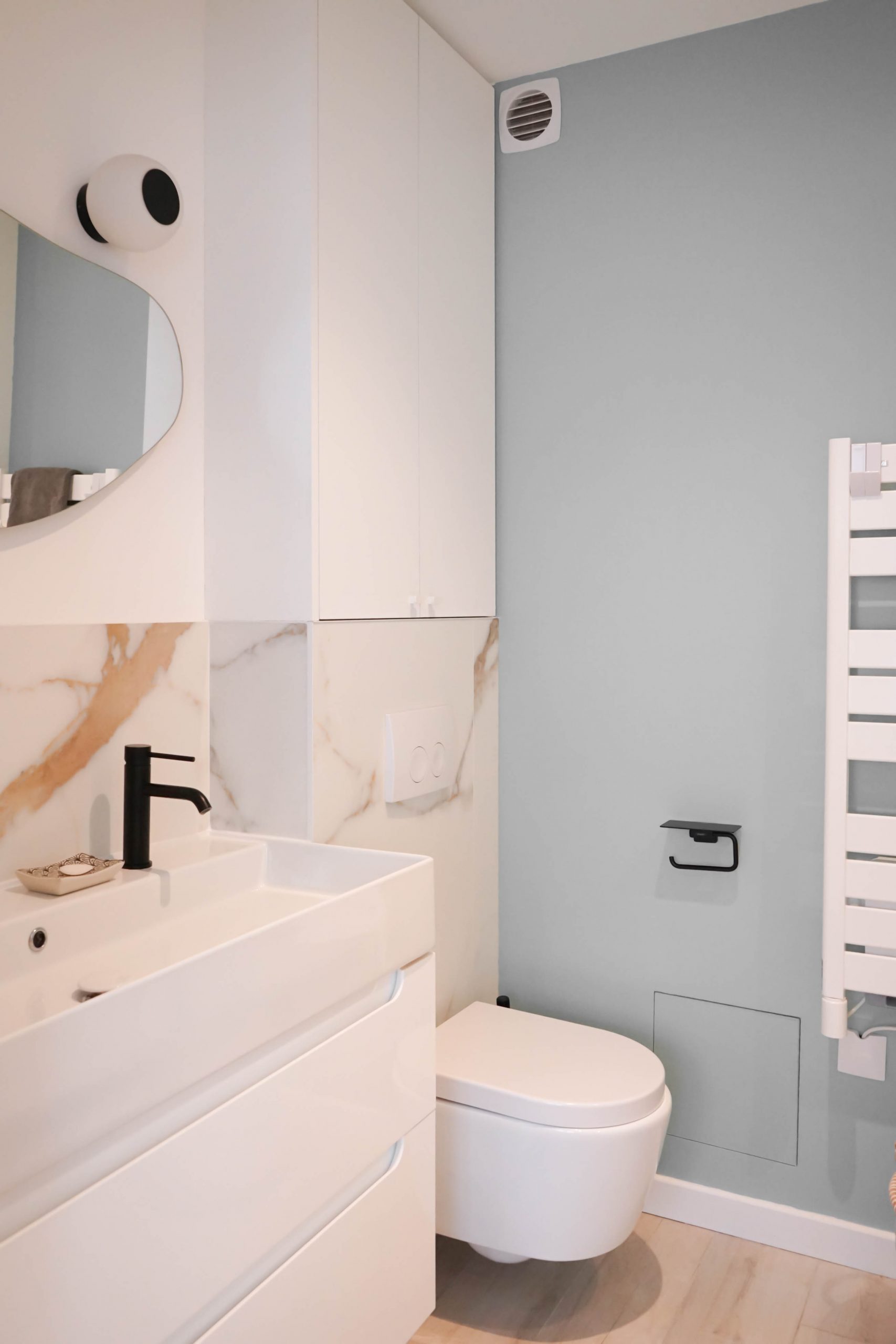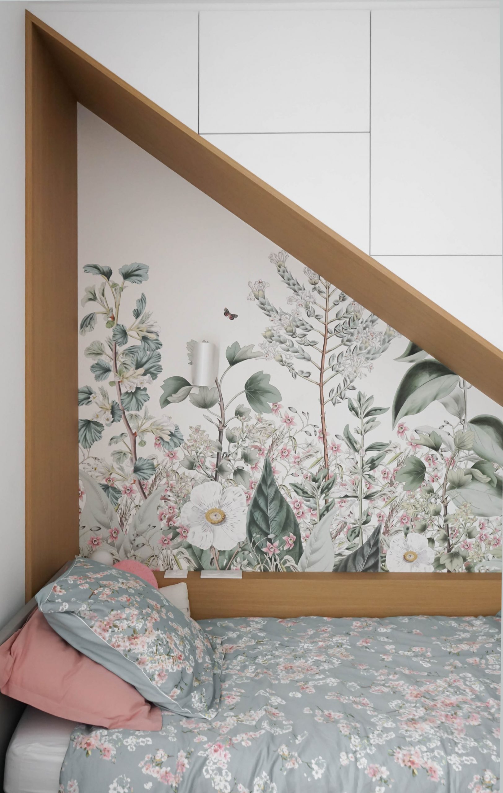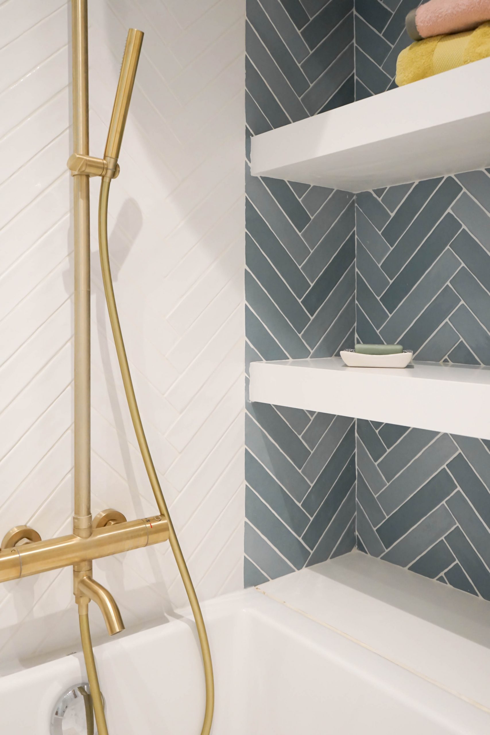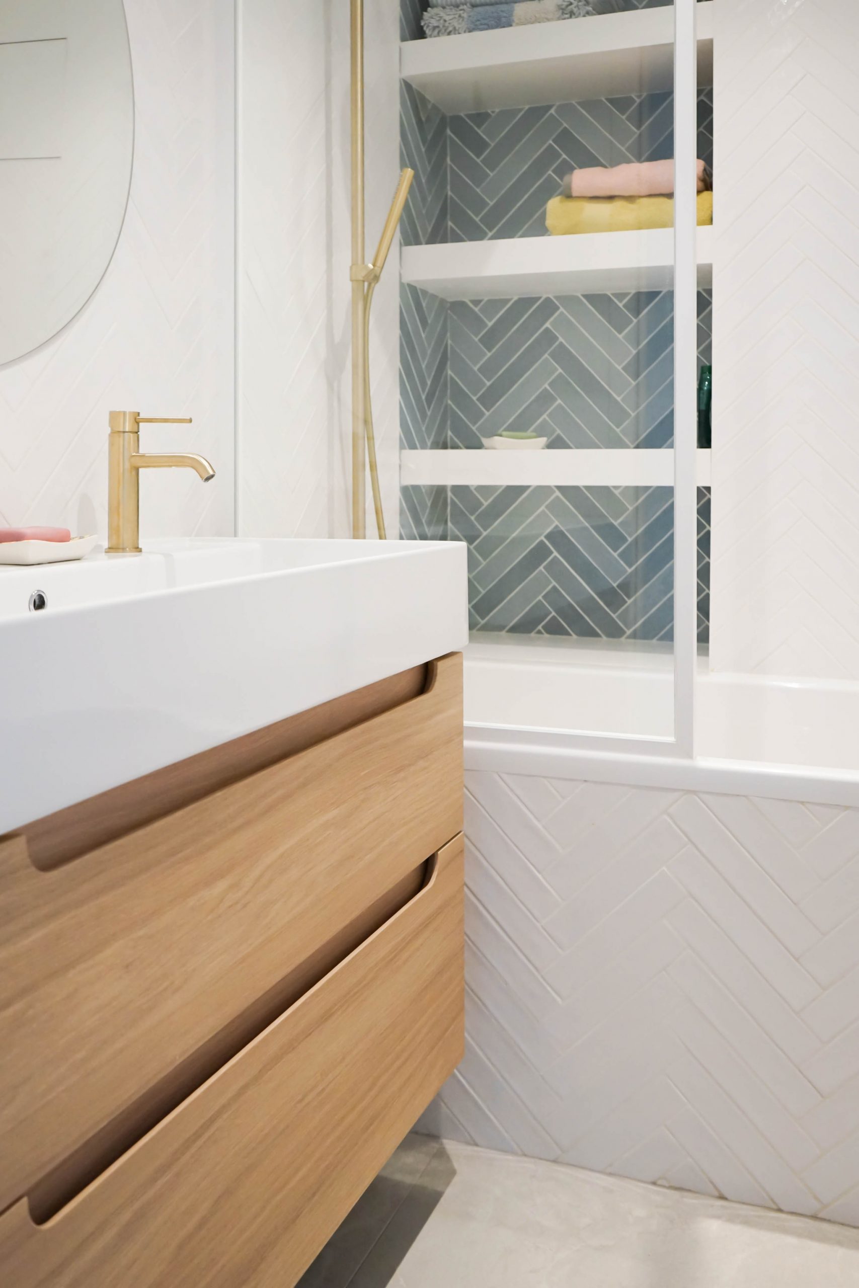 La configuration structurelle du lieu a permis une refonte totale de la distribution intérieure. Toutes les cloisons ont été déposées, offrant une liberté totale de réorganisation, seules les contraintes techniques (gaines, arrivées d’eau, réseaux) ayant guidé certains choix. Chaque pièce a été conçue sur mesure, avec un travail approfondi de menuiserie intégrée : placards, lits, bureaux, meubles TV, bibliothèques… Chaque élément a été pensé pour répondre aux besoins spécifiques et à la personnalité des membres de la famille. Le rangement est resté au cœur de la réflexion, garantissant un intérieur fonctionnel, fluide et chaleureux. Résultat : un projet dense, technique et totalement personnalisé, pensé pour accompagner les besoins évolutifs d’une jeune famille dynamique dans un lieu qui leur ressemble enfin.