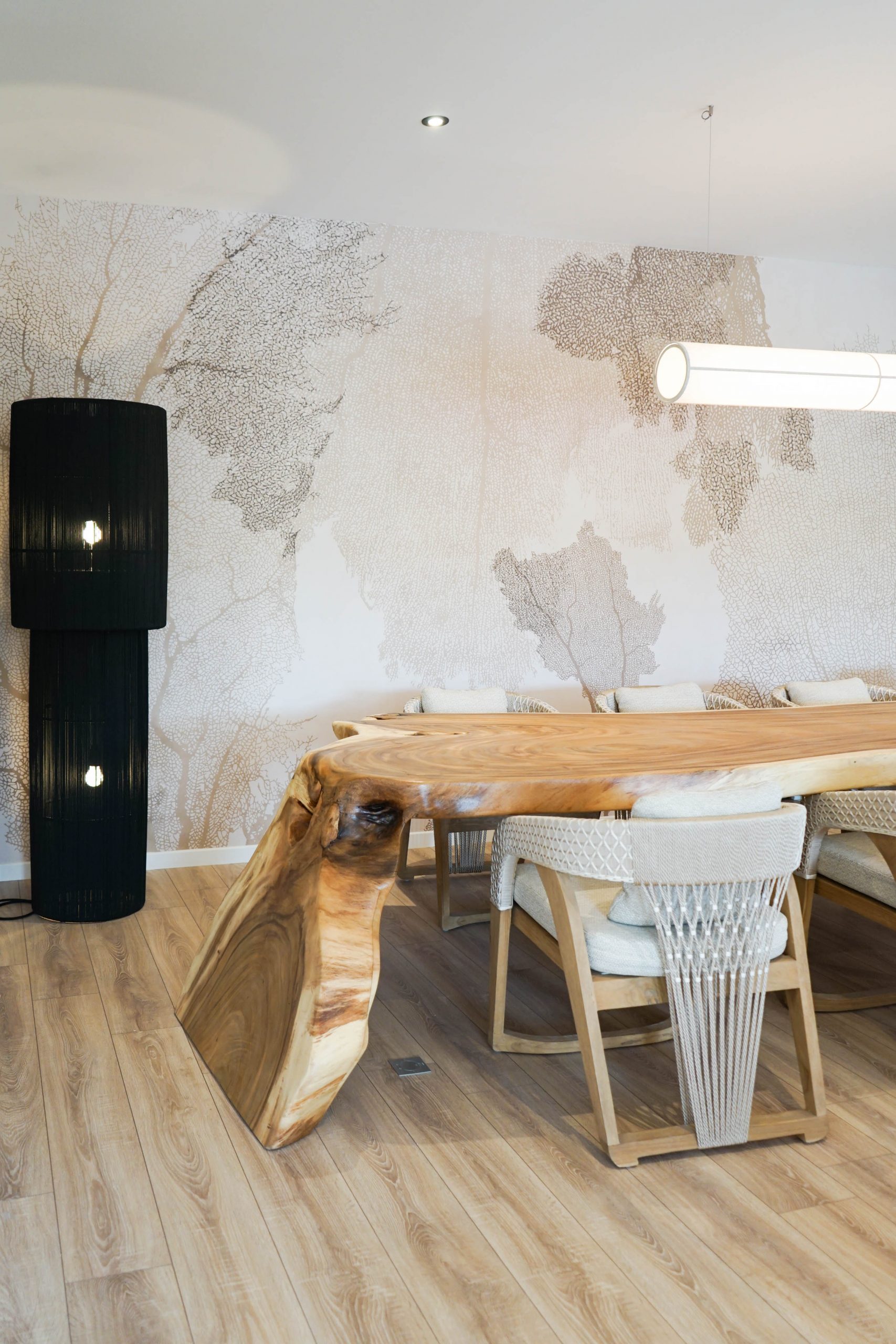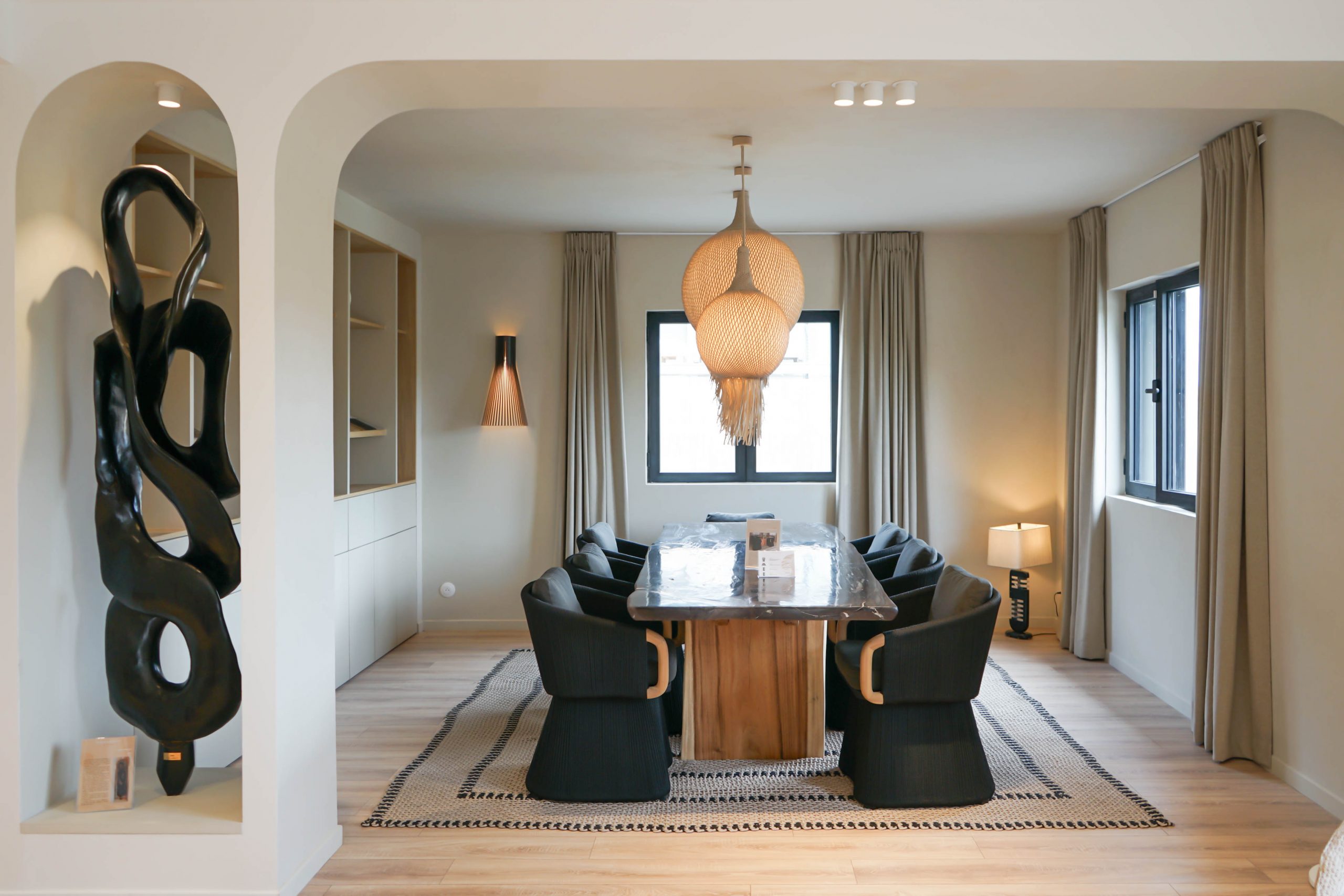 L’éclairage, pensé comme un véritable outil scénographique, combine différentes sources pour moduler l’ambiance et sublimer chaque pièce. Une palette de tons naturels, l’usage de matériaux bruts et un travail minutieux sur la lumière composent une expérience immersive et élégante, où chaque objet est révélé et mis en valeur.