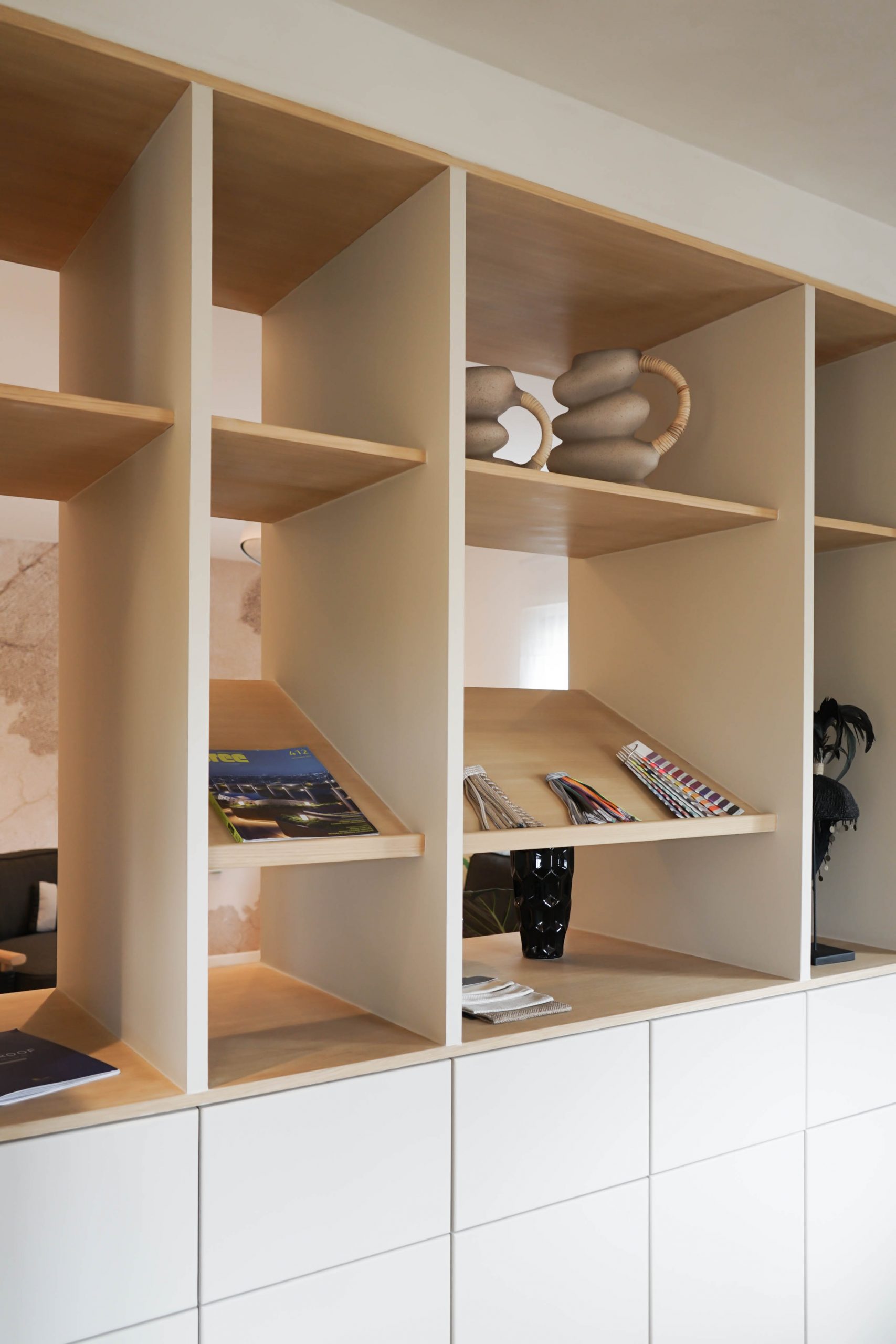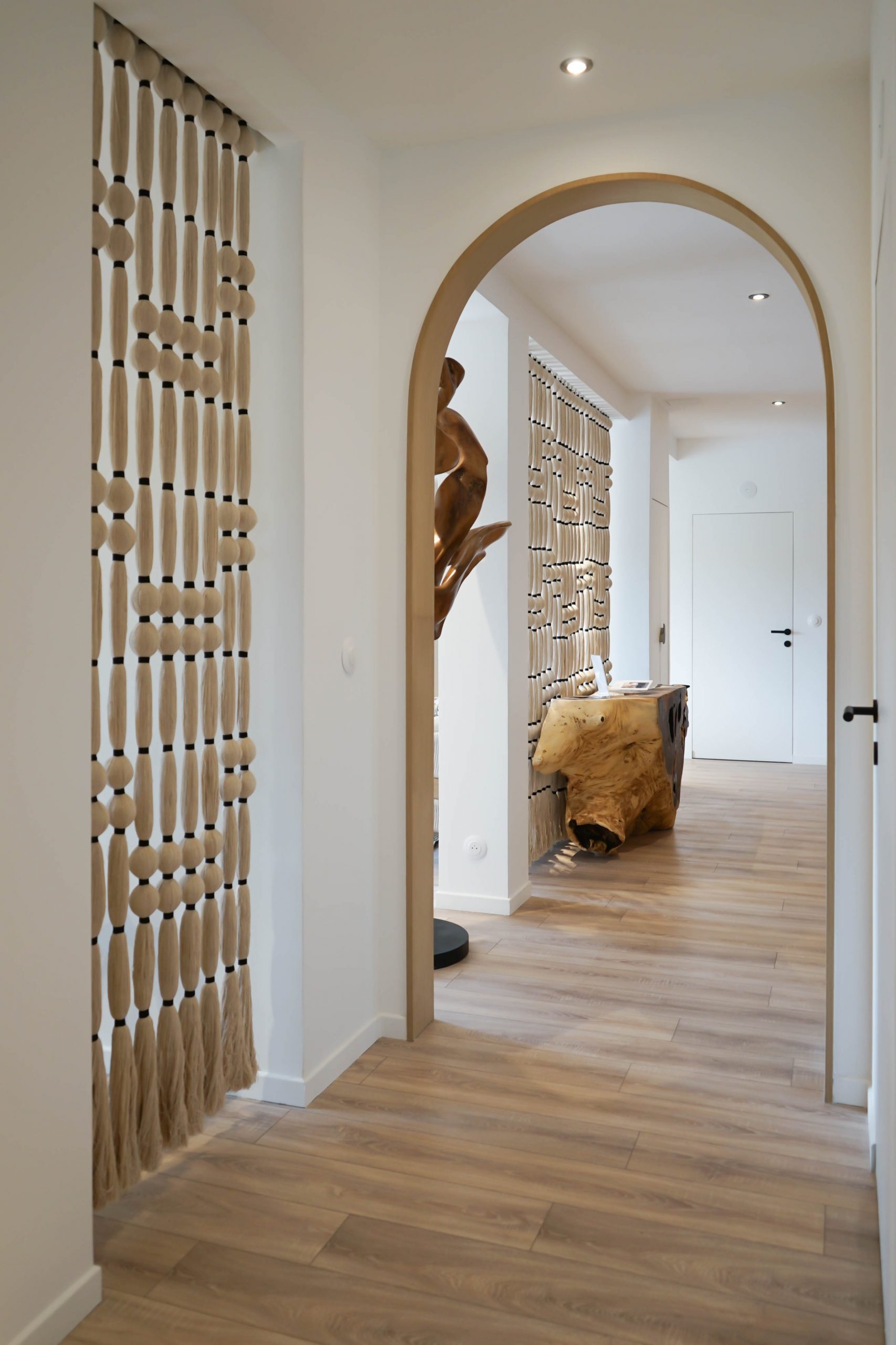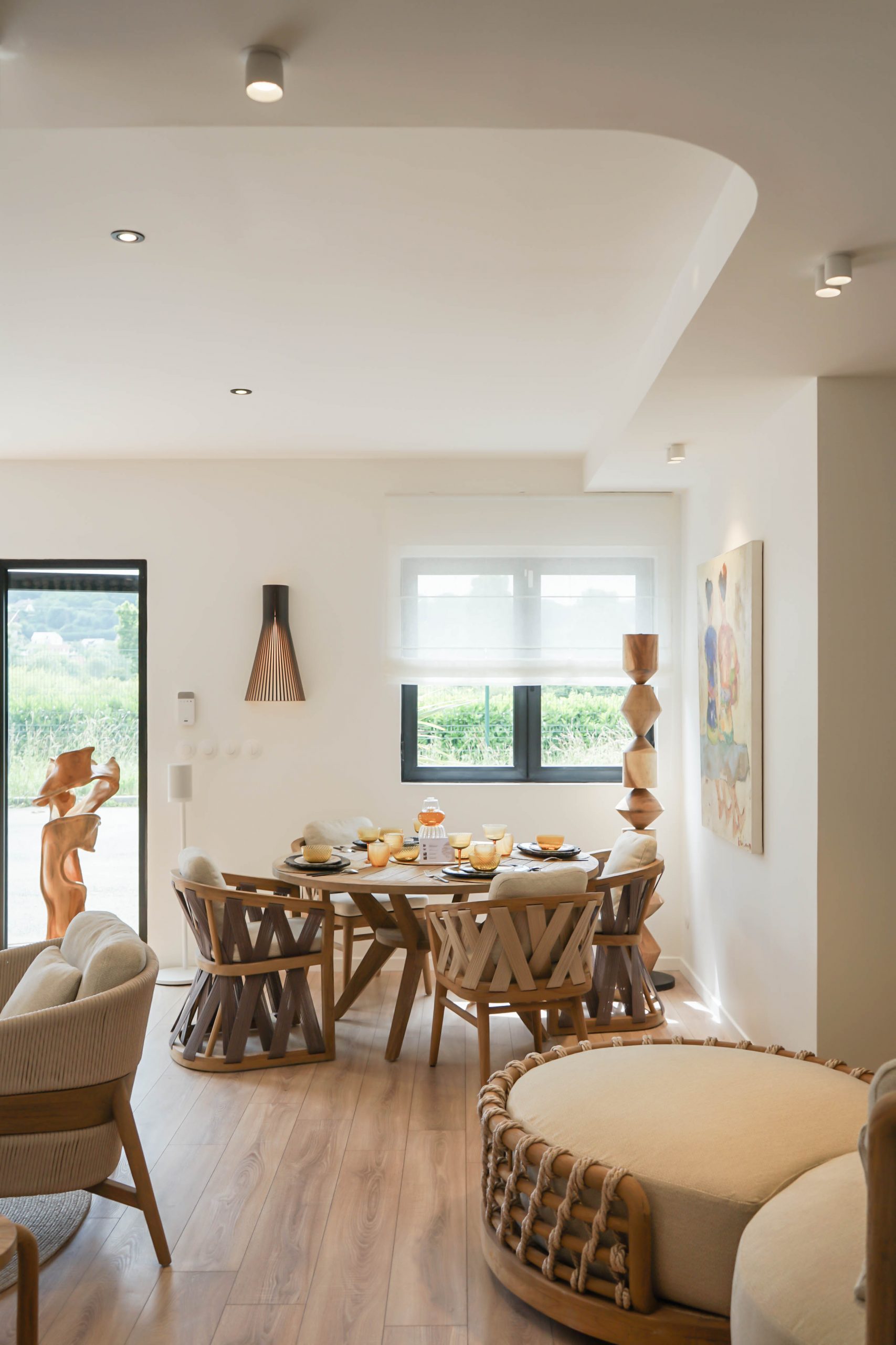 Un cloisonnement partiel structure la circulation et crée des zones successives. Ce parti pris favorise la découverte graduelle des pièces plutôt qu’une vision d’ensemble immédiate. Des jeux de transparence et de multiplication des points de vue attisent la curiosité et dévoilent subtilement les espaces voisins.